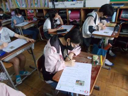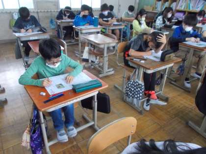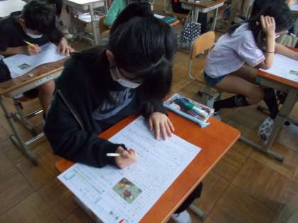6年生になって国語科では1回目のテストを行いました。文章をしっかりと読み,答えを考えている姿や丁寧に漢字を書く姿が素敵でした。