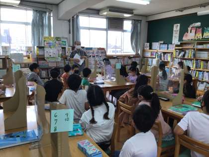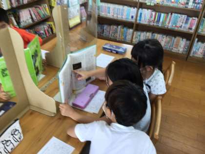 図書館でオリエンテーションを行いました。ポプラディアで「スーパーマリオブラザーズ」や「ナイチンゲール」などの言葉の意味を調べました。