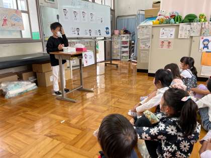 うのせんせいに なまえをよばれたら おおきなこえで 「はい!」と へんじをして