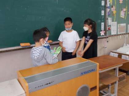 山階南小学校へようこそ! 1年生週間の出し物で,ひまわり学級からは,こいのぼりを作って,プレゼントをしました。
