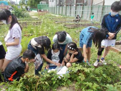 植物がでんぷんを作るのに日光が必要なのかを確かめるために,アルミを巻いた葉,実験直前にアルミを外した葉などを用意して実験に臨みました。