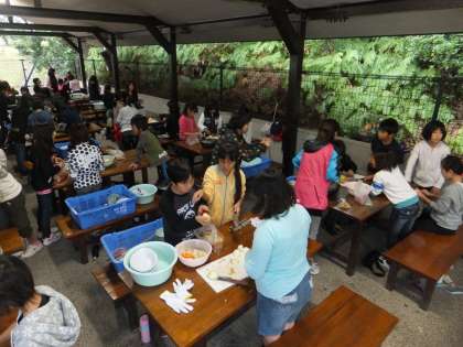 楽しみの一つである野外炊事(カレー作り)が始まりました。班で役割分担・協力しながら活動しました。包丁の使い方もたいへん上手でした。