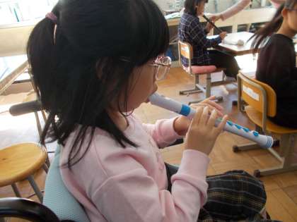 リコーダーを使って、あちゃぱちゃのうたで「ソ・ラ・シ」の音を出す練習をしました。