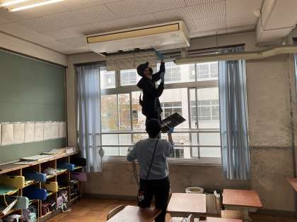 3年ぶりにPTA主催でクリーンキャンペーンが行われました。多くの保護者のみなさまに集まっていただきました。先生たちも一緒に頑張りました。エアコンのフィルターや扇風機、窓の高いところなど、子どもの手が届かないところを中心に掃除していただきました。子どもたちは気持ちよく学校生活を送ることができます。ありがとうございました!