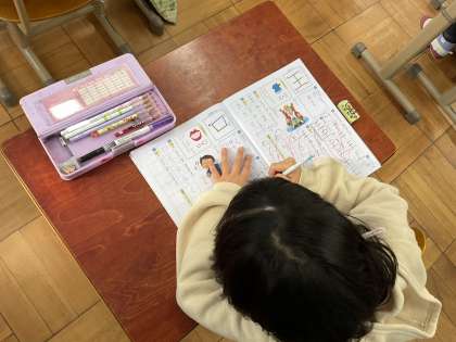 あとすこしの しん出かん字のしゅくだいを ていねいに とりくんでください。