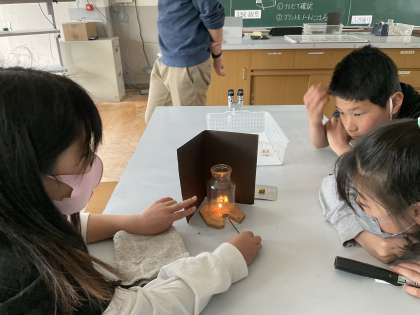 どの気体がものを燃やす働きがあるのかを実験で調べました。結果がどうなったのか,ぜひ子どもたちに聞いてみてください。