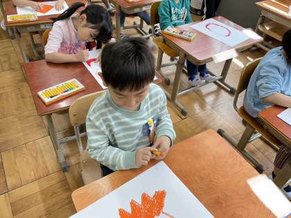 クレパスをつかって ていねいに いろもぬりました。