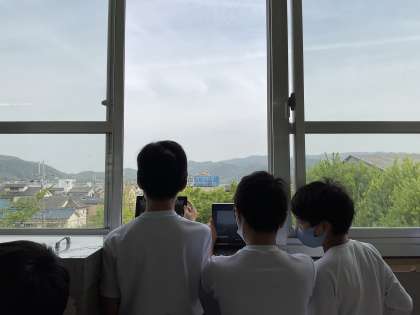 天気は、雲の様子とどのような関係があるのかをタブレットを使って調べました。同じ日付けの午前と午後の様子を撮影しました。撮影をしてみると発見があったようで、次回の学習でまとめていきます。