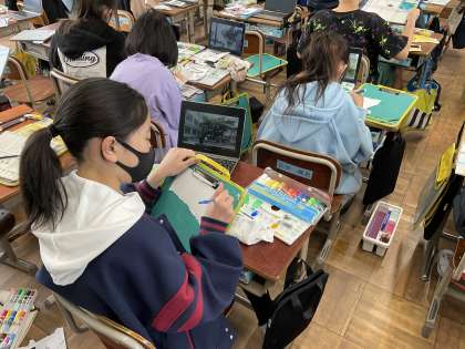 絵の具を使って、学校の中のお気に入りの場所をスケッチしました。今まで絵の具では、スケッチをしたことがなかったのでどの子も意欲的に取り組んでいました。次の時間では、画用紙を組み合わせて、一つの作品に仕上げていきます。