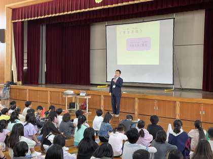 5月の朝会が行われました。5月は憲法記念日なので、校長先生から日本国憲法についてお話をしていただきました。朝会で聞いたことを活かして、学校でのルールを守り、安全に楽しく生活してほしいと思います。