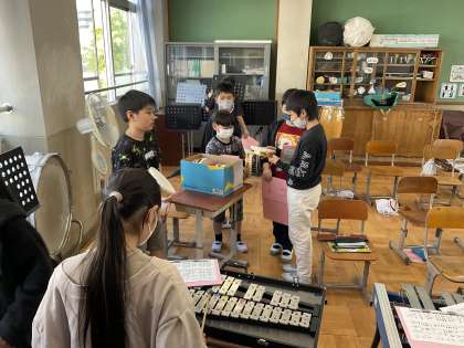音楽の学習で合奏の練習を始めました。曲に合わせてステキな音色が出せるように練習を頑張っています。