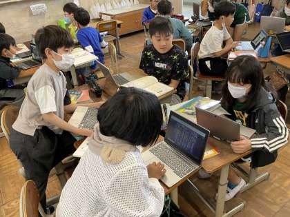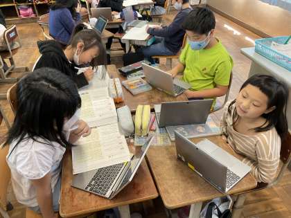 国語科の「きいて きいて きいてみよう」でインタビューを行いました。どの子もそれぞれ,聞き手・話し手・記録者の役割に分かれました。初めは、難しそうにしている様子でしたが、慣れてくると楽しそうに行っていました。