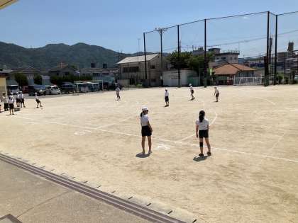 いい天気で、気持ちよく新体力テストができました。それぞれの種目が終わると、「どうやった?」とお互いに記録を意識しているようでした。
