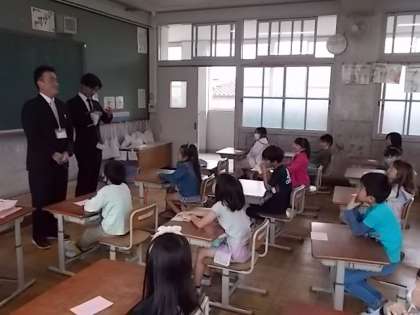 今日から新しい先生に来ていただきました。子どもたちも新しい先生に興味津々でいろいろな質問をするなど、楽しそうに話していました。