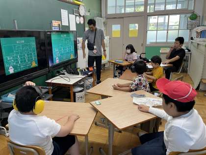 算数の授業で、立体について学びました。面、辺、頂点の数はそれぞれいくつあるのかな、と考えることができました。