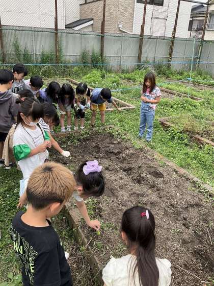 野菜がたくさん育つように雑草を一生懸命ぬく姿がたくさん見られました!