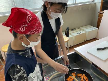今回の調理実習のメインである「炒める」を経験しました。食材によって火の通り方が違うことがわかっていました。