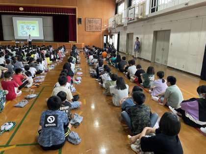 6月の朝会がありました。今回は、梅雨の時期でも学校で楽しく安全に過ごすことができるようにと校長先生から話をしていただきました。話を聞いているときの姿勢も高学年らしくとても立派でした。