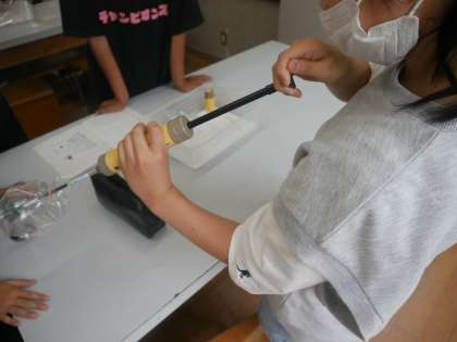 理科で、空気中の気体の数値を測る実験をしました。実験手順をもとに、自分たちで進めることができました。