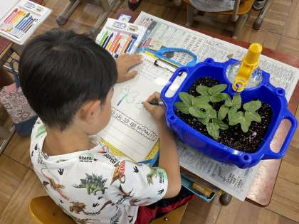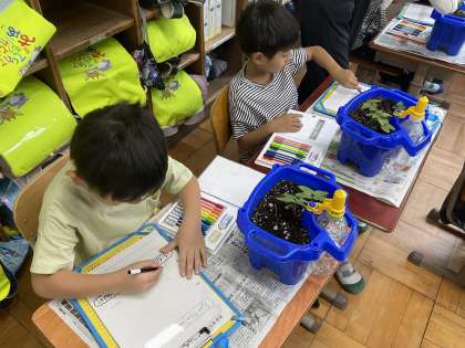 そして、たくさんみずやりしたい。 はやくおおきくなってほしい。などあさがおにたいしてのきもちも はなしていました。