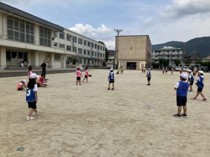 キャッチボールで体ならしをした後、ゲームをしています。