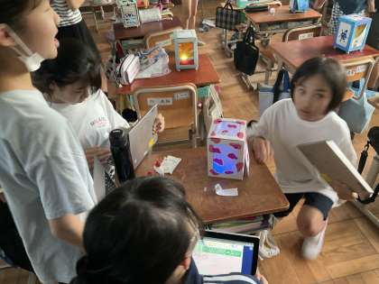 自分達がつくったランプを鑑賞しました。友達の良いところや工夫されたところを鑑賞し,互いに褒め合う姿が素敵でした!