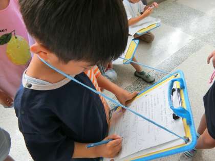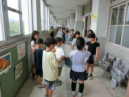1年生が生活の『なかよしいっぱいだいさくせん』で班に分かれてインタビューに行きました。班ごとでインタビューをしに行きたい教室を選び、何を知りたいのか、何を聞きたいのか話し合い、インタビュー本番を迎えました。