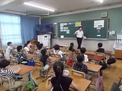 そこでは、お金を拾った時や友達に対する接し方など具体例を交えながら、ルールや犯罪についてわかりやすく説明してくださりました。子どもたちも、興味をもっていろいろ質問しながら聞いていました。