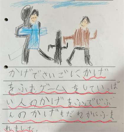 生かつかの学しゅう「ふゆと ともだち」で かげとあそんだあとに 子どもたちが かんじたことやかんがえたこと、 見つけたことをカードにかきあらわしました。