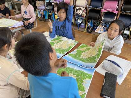 「有名な神社があるね」「大文字山がある」など 見つけたことをたくさん出し合っていました。