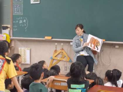 本日、図書館司書の先生と図書ボランティアの方に読聞かせをしていただきました。