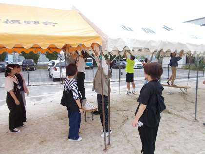 当日に向けて保護者の方々にお手伝いいただきテントを立てました。ご多用の中、また天候もすっきりしない中ではありましたが、多数お越しいただきありがとうございました。