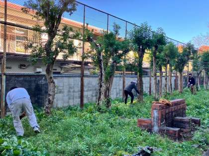 約50名の保護者、児童、先生方にご協力をいただき、校舎内の清掃と北校舎裏・畑の草引きや剪定を行っていただきました。