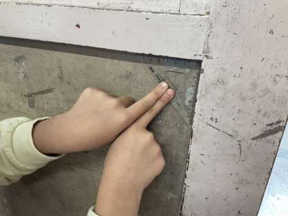 三角定規を使って、教室の中にある直角の形を見つけました。