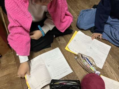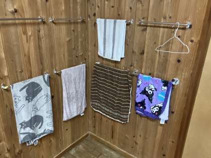 夕食までの間一息ついています。お風呂で濡れたタオルもしっかり干しています!
