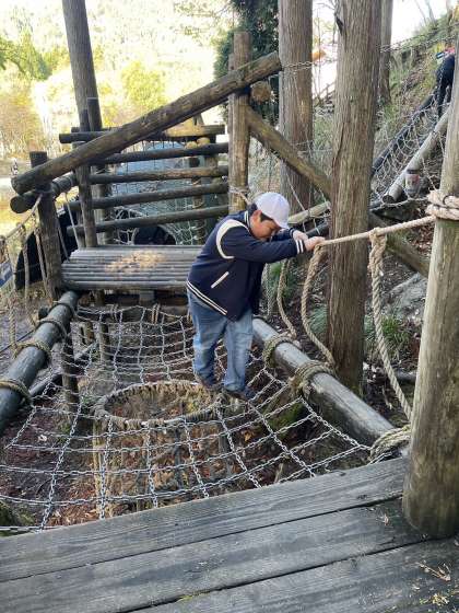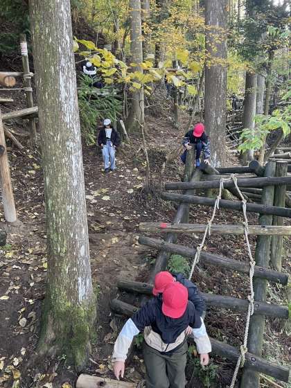 ロープや足元を確認しながら、上手に取り組んでいます。