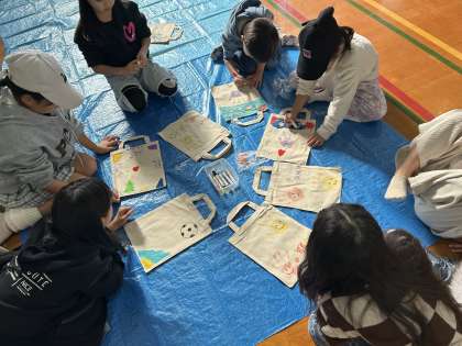 今年度PTAでは「あそびば」にてスーパーボールすくい、松ぼっくりツリー作り、オリジナルトートバッグ作り、紙ひこうきとばしを担当しました。
