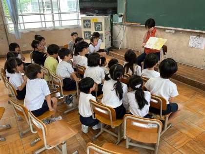 それぞれのクラスで朝学習の時間にヤマナミライの図書ボランティアの方々に、絵本を読んでもらいました。ワハハハと朝から楽しそうな笑い声が聞こえてきました。また、あるクラスでは、今回読んでくださったボランティアさんの子どもの頃によく読んでいた「たまねぎさんのハンカチ」という絵本を読んでもらって、「おもしろかったー!!図書室でまた探したい!」と次、図書室にいくのを楽しみにしていました。