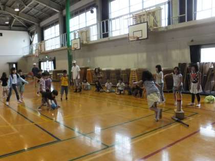 最近はめっきり減少傾向にあるベースボール型の遊びは,ルールで最初戸惑う子どもたちもいました。しかし,お互いに声を掛け合ってだんだん分かってくるうちに楽しくなり,応援の声も高まってきました。