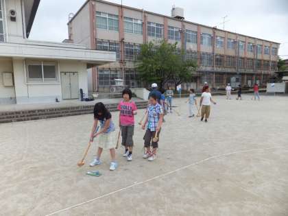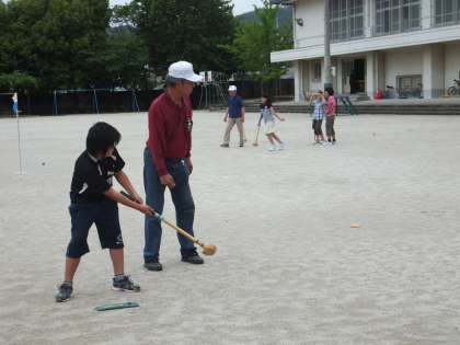 今年度は新たにグランドゴルフにも挑戦しました。子どもたちはすぐにコツをつかんで,ゲームを楽しんでいました。もっとやりたいという声が多かったです。
