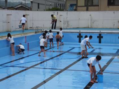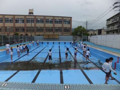 徹底的に磨いてピカピカになったプール。6年生の皆さん,ありがとう。