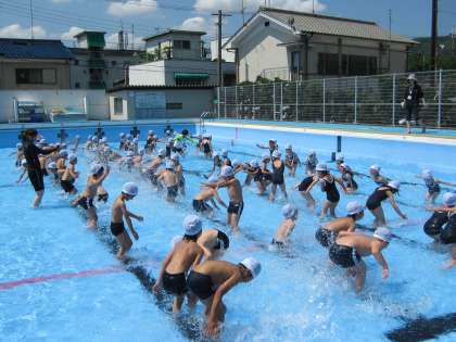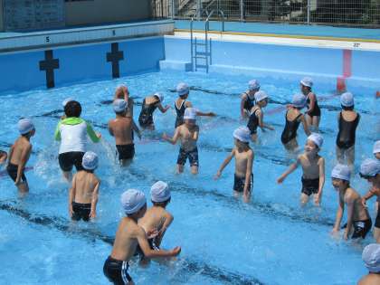 待ちに待った水泳学習がやってきました。今日は低水位で低学年の日です。1年生にとっては初めてのプール。天候にも恵まれて,気持ちのよい水遊びを思いっきり楽しみました。
