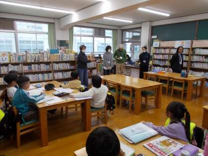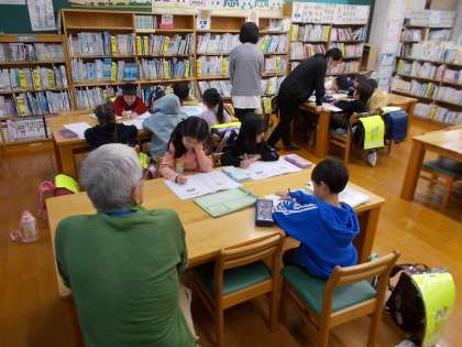 図書室にて、放課後学びの先生と一緒に学習を進めていきます。