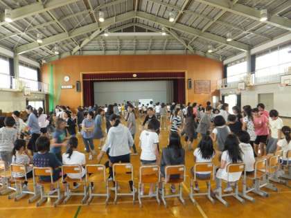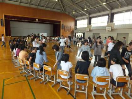 6年生は保護者と一緒に,140名くらいのダイナミックな「何でもバスケット」を体育館で行い,大きな歓声とともに盛り上がっていました。