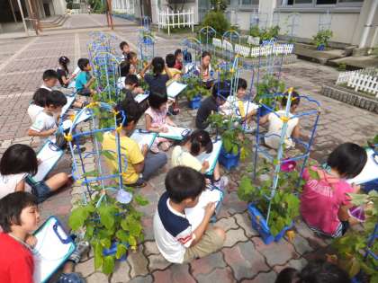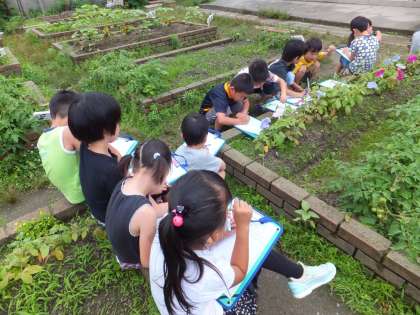 いろんな色の花が咲いて美しいです。学習園にもアサガオや野菜を育てています。