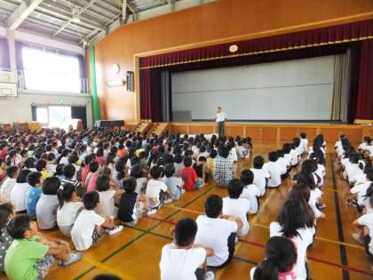 不審者が職員室に現れたという想定で,避難訓練を実施しました。子どもたちは放送や担任の指示を聞いて,安全に避難しました。校長先生の講評の後,山科警察署の方より防犯に対するお話をしていただきました。まずは危険から逃げること!