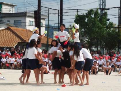 5年団体種目の「騎馬戦」です。3色対抗なので,作戦も必要です。応援が熱くなり,声援がすさまじかったです。