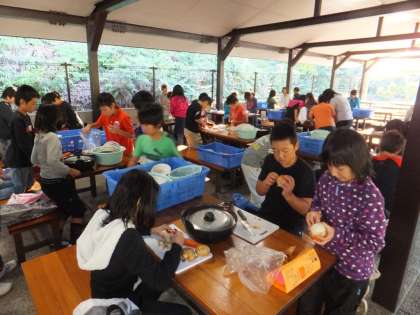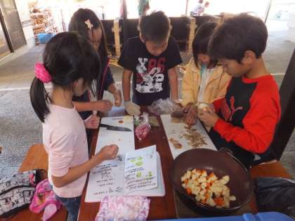 カレー作りに挑戦です。野菜や肉は,上手に切れたでしょうか。