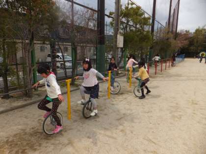 PTAから10台プレゼントされ,一輪車の人気も出てきました。