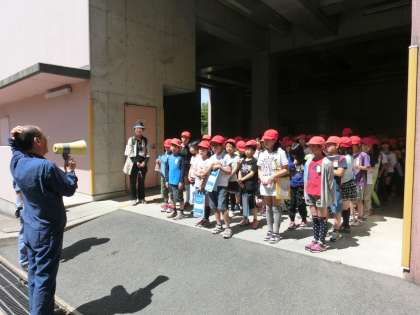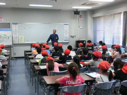 社会見学で「南部クリーンセンター」と「鳥羽水環境保全センター」に行きました。とても大きな設備で,センターの方に案内や説明をしていただきました。